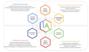 Our attendance approach is fundamentally guided by the Inclusive Attendance professional development model. Comprising six tailored Learning Modules, this model empowers us to deepen our understanding by facilitating continuous professional learning for all staff. Within this model, the four domains of practice ensure the provision of professional learning, professional development, evidence-based practices, and exemplary leadership and management to seamlessly integrate theory into practice.